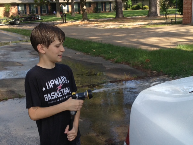 I found that worked pretty well last week when I needed to wash the car. “Hey,” I called to my son, S. “How would you like to go outside and play in the water.”