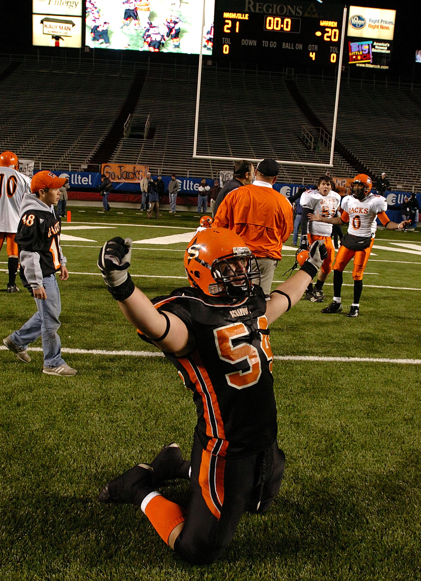 One of my favorite moments – a Nashville player celebrates a state title following a controversial win with the scoreboard telling the story in the background in 2006.