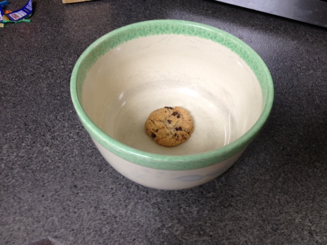 My daughter walks to the cabinet, stares for minute, and pulls down a bowl big enough to contain the participants of a hot tub party – along with the hot tub.