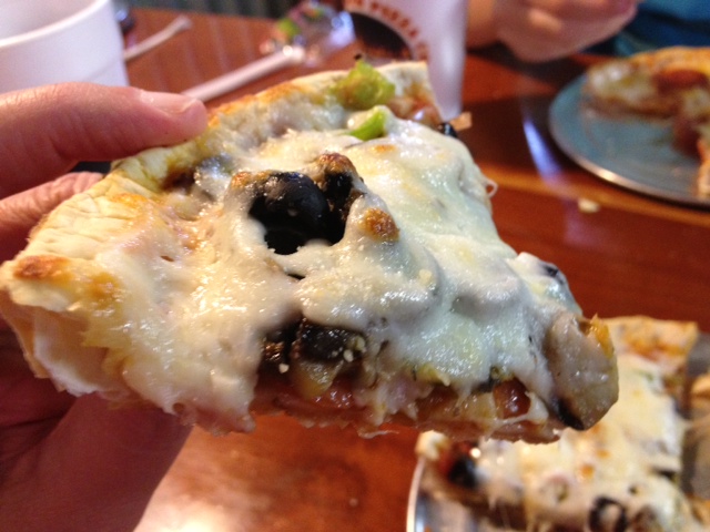 But probably what we like best is that we can each get the exact pizza that we want. I like supreme, and my son just likes pepperoni.